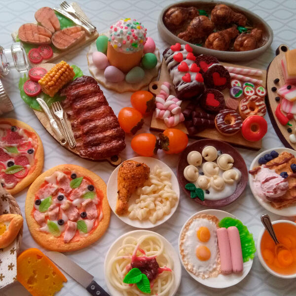 Miniature scale 1:12 and 1:6. Handmade. Polymer clay food and accessories.